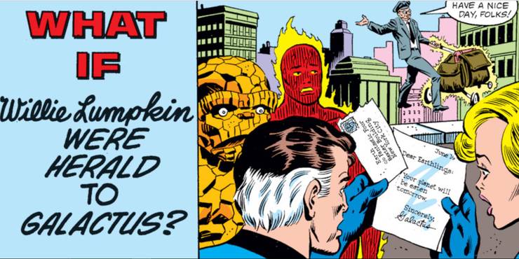 This was more of a joke than anything else. In one of the panels of What If?, issue #34 there is a single panel asking the question What If? Willie was a Herald to Galactus. It is a comedic relief as the Fantastic Four opens the letter to find the statement – “Your planet will be eaten tomorrow.” Fans might remember the character from the Fantastic four, he was the one played by Stan Lee. Excelsior!!
