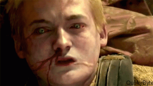Drinking the poisoned wine, Joffrey struggled and got to a die a satisfying (for everyone else) and painful death in his mother’s (and father’s, let’s not be deluded) hands in front of everyone. And it was fitting because it was at his own wedding.