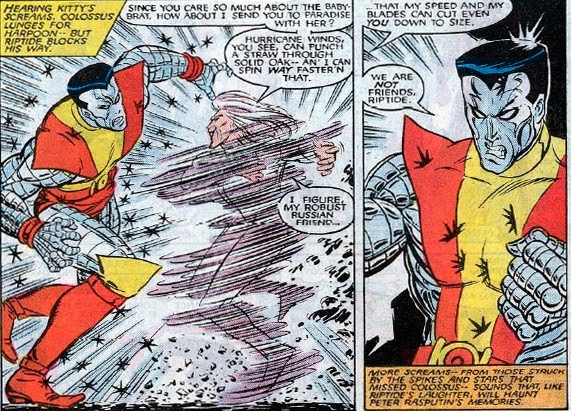 Decades back there was a time when X-Men and X-Forces joined hands to prevent a group of mercenaries to clear off Morlock’s city, in a crossover event known as the Mutant Massacre. Marauders were responsible for the massacre of the Morlocks. During the fight, Colossus kills one of the Marauders, Riptide.