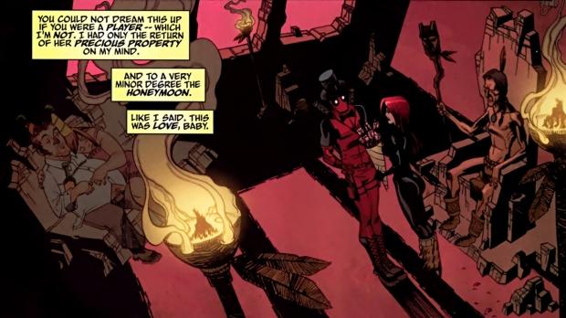 Deadpool went on an intergalactic mission to take down Macho Gomez and killed him. His wife Orksa got angry with Deadpool, but he calmed her down with a kiss and they got married on the spot. It was Orksa’s fourth marriage which pissed off another alien who had eyes on her.