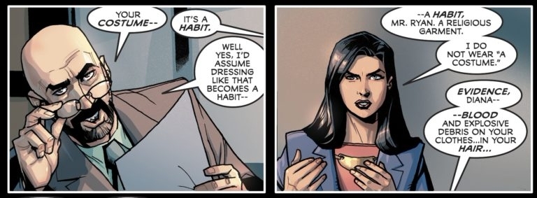 “A habit, Mr. Ryan,” Diana claims, “A religious garment. I do not wear ‘a costume.'”