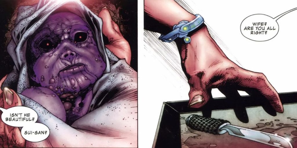 Thanos’ tryst with Death began when he was just a teenager. Believe it or not, Mad Titan used to be a good little kid. That was until his brother made him torture an innocent creature to Death. It was then his journey to court death began. He would do anything for her. He fell for her and brought billions of skulls as a tribute to her, guess what she still dumped him. Later, Thanos realized Death is having a relationship with Deadpool of all people, he cursed him with immortality.