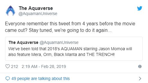 As you can see above, the twitter handle named The Aquaverse tweeted 4 years ago that Mera, Orm, Black Manta and The Trench will be featured in 2018’s Aquaman, and they were spot on. Well, they claim that they are going to do something like this again, and here’s what they propose: