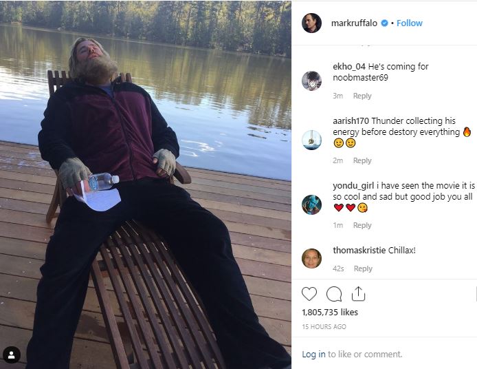 Well, he looks super-happy in the picture and no wonder all envy him for it. Many fans are saying that Hemsworth did this to get into the skin of ‘Big Lebowski’. But, in the end, we have to admit that he looks really tired and the script he is holding is proof. Here’s the picture Ruffalo shared: