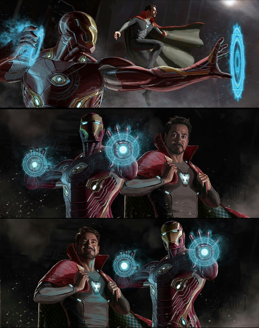 Avengers: Infinity War & Avengers: Endgame had so many alternate concept arts. There were so many alternate versions of certain events that happened in these two films. Endgame had so many different time heists and team-ups in the film final battle. Infinity War also had different team-ups. In one alternate scene that took place on the Q-Ship, Iron Man would’ve saved Doctor Strange from Ebony Maw by making actually making him wear the Mark 50 nano-tech armor. Take a look: