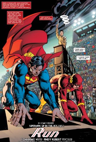 Now looking back over the years we have these records. The first two races between the Flash and Superman ended up in a tie. And over the years, Superman kept losing to different Flash’s over and over. But recently in the comic, Superman: Up In The Sky #4, Clark Kent finally proved he can match up the speed of the Scarlet Speedster.