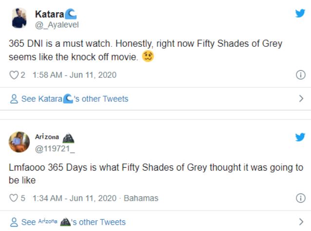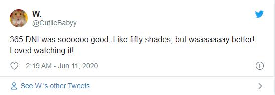 All three Fifty Shades of Grey films ended up making over $1 Billion worldwide. And it didn’t even release in some Asian countries. So, that’s enough to tell us Eroticism plays a huge role in viewership. And since 365 Days is far ahead of Fifty Shades of Grey with its brutal kidnapping, very graphic, over the top sex, it had to attract millions of viewers since it was easily accessible for Netflix subscribers. In fact, many Netflix users have tweeted that 365 Days makes Fifty Shades of Grey look like PG. Here are some of the cool fan reactions for the Netflix sensation:
