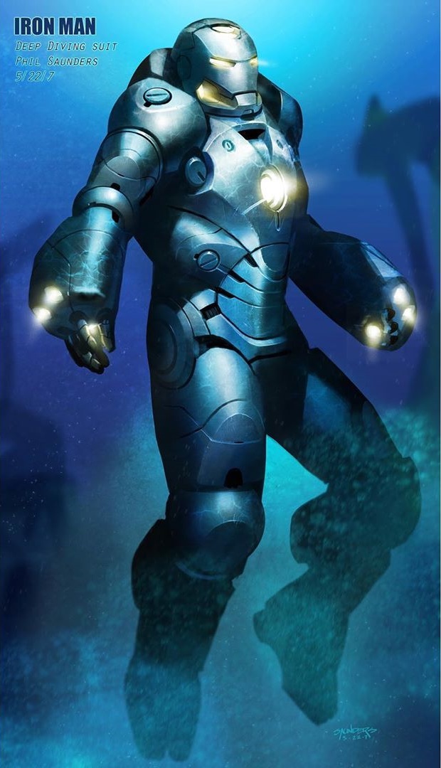 This suit did show up in the final battle, but we didn’t get to see its real purpose being realized. It would’ve surely been awesome if Tony ever wore this suit for an underwater mission. Actually, Tony’s purpose of blowing up all his suits wasn’t really clear because it really had no effect. He was back with the Avengers. And those suits that had distinct abilities could’ve been of great help in the future battles. Anyway, here are some unseen concept arts for how Hammerhead could’ve looked: