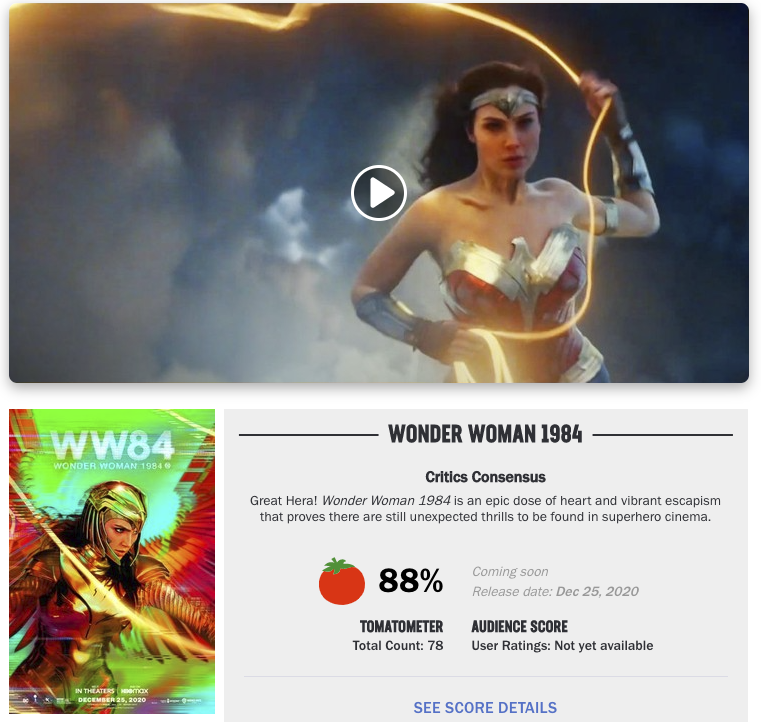 Wonder Woman 1984 Rotten Tomatoes Score: