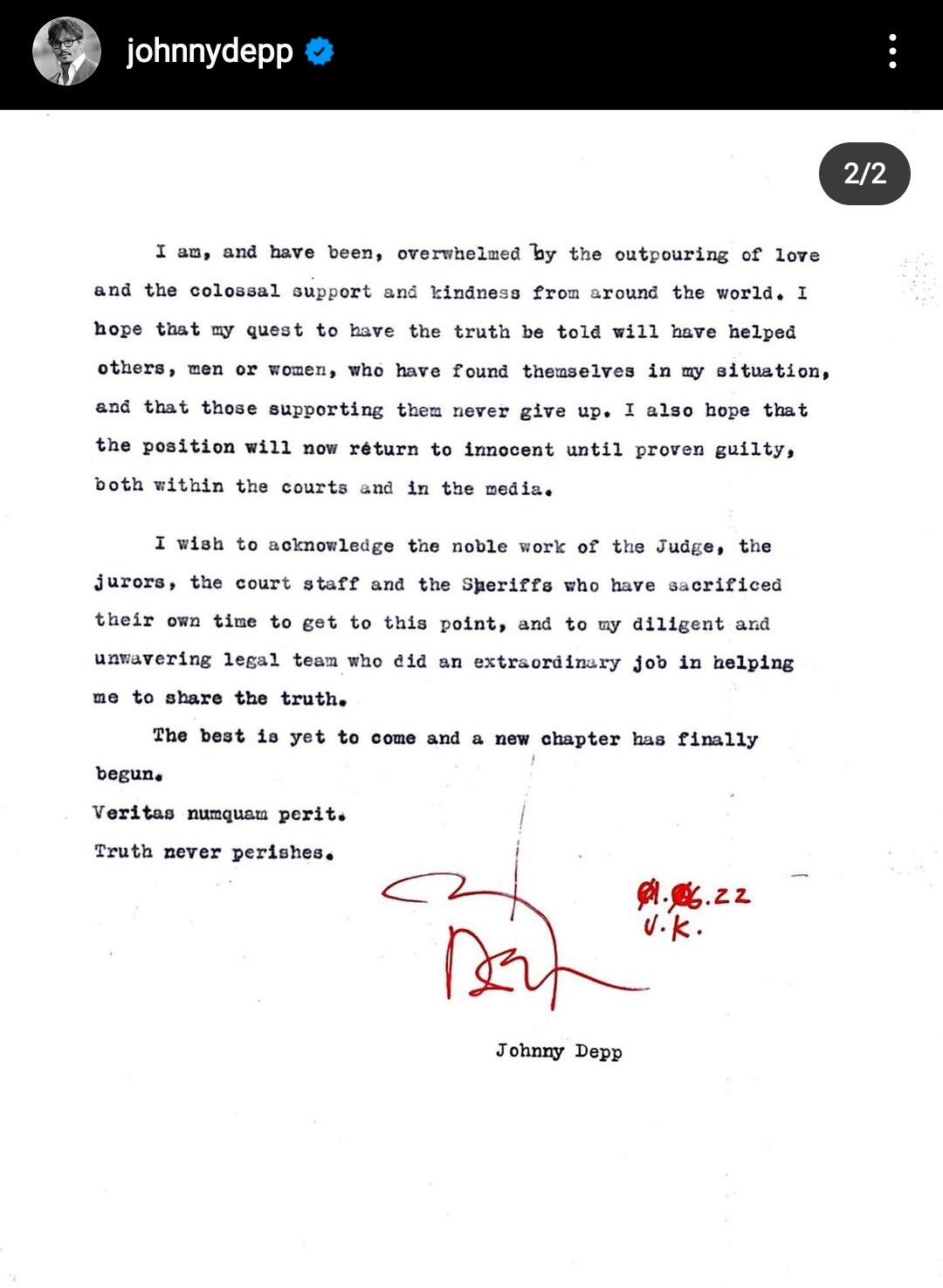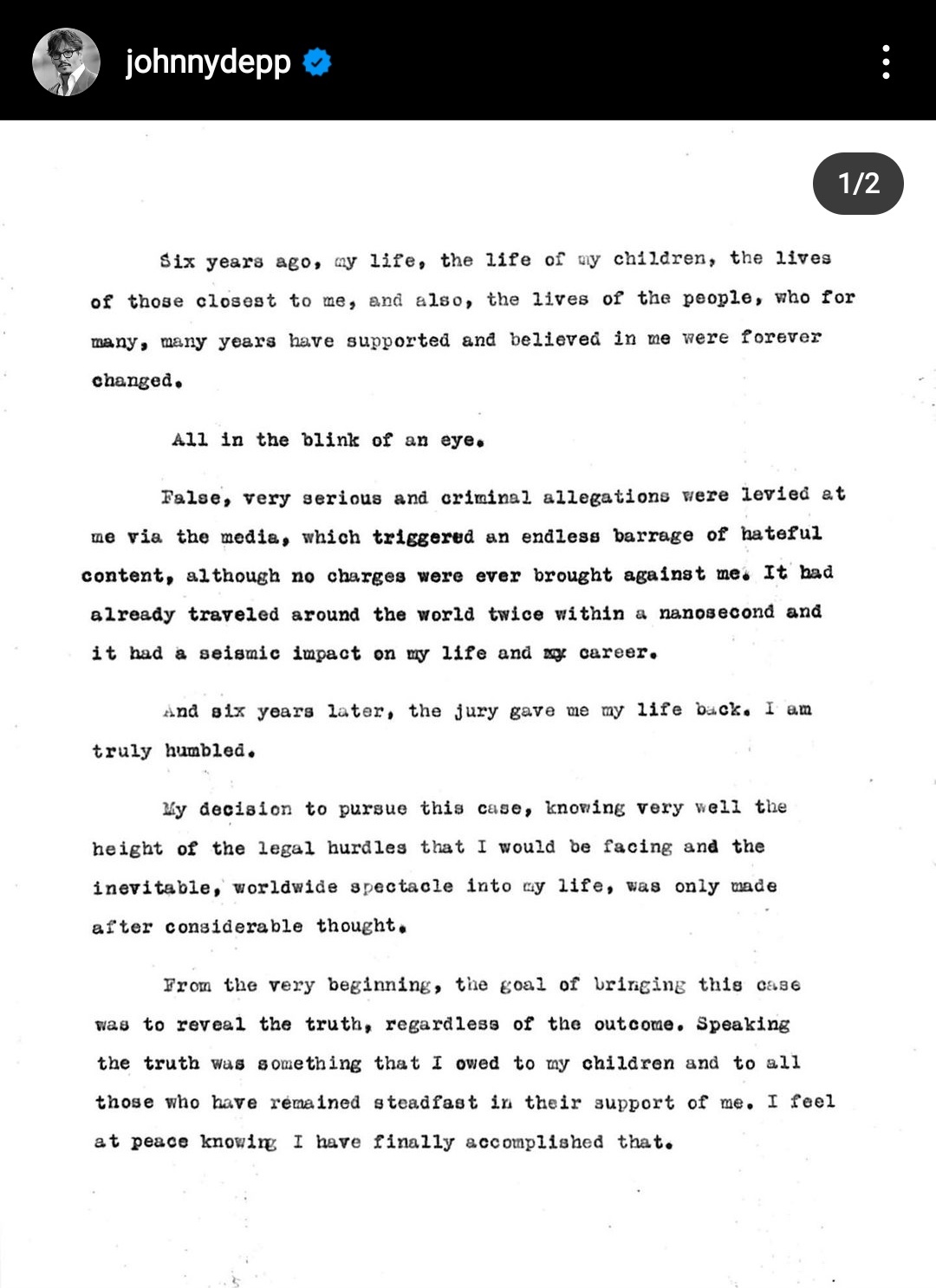 All in all, Heard is supposed to pay around $10.35 million to Johnny Depp in settlement of all claims. It is quite the victory for the actor and he shared the above letter thanking his fans and his lawyers for the victory. The man also mentioned how hard the last two years have been for him and his family and that he is glad that justice has finally been served. This decision shows that no one can sway the Justice system by playing the victim. There must be a mountain of evidence to convict someone and that is what wins in court, not frivolous claims. Amber Heard also made a social media post after the conclusion of the trial but hers was more melancholic in nature.